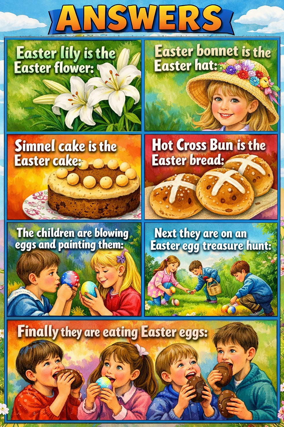 Before going through answers, you could discuss things people get up to in church, especially over Easter time ...